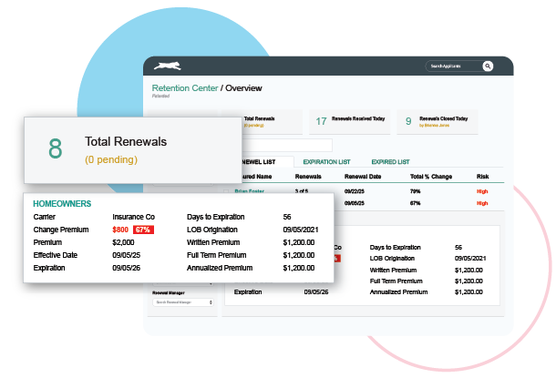 EZLynx’s patented customer retention software prioritizes at-risk policies, summarizes premium-bearing changes, and automates follow-ups so you can touch 100% of renewals. This helps you lower customer churn and boost customer satisfaction.