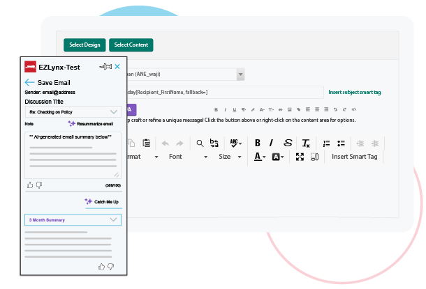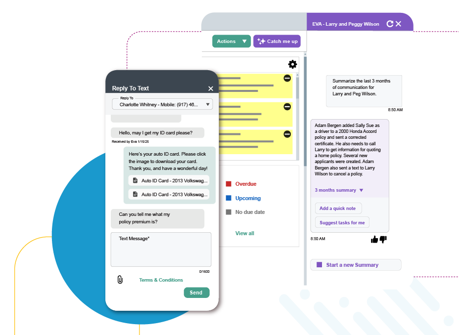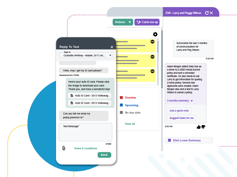 Insurance agents spend a large portion of their day handling client communications, checking on quote status, managing claims, and performing other routine tasks that could benefit from increased efficiency. That’s where artificial intelligence (AI) comes in – to take your busywork, not your job. Our AI-powered tool EZLynx Virtual Assistant™ (EVA) is designed specifically for insurance agencies like yours and includes a slew of features to enhance the way you work and how you engage with your clients. Whether you’re prepping for meetings, drafting emails, or looking for EZLynx product help, EVA does the heavy lifting, leaving you more time to focus on what you do best.